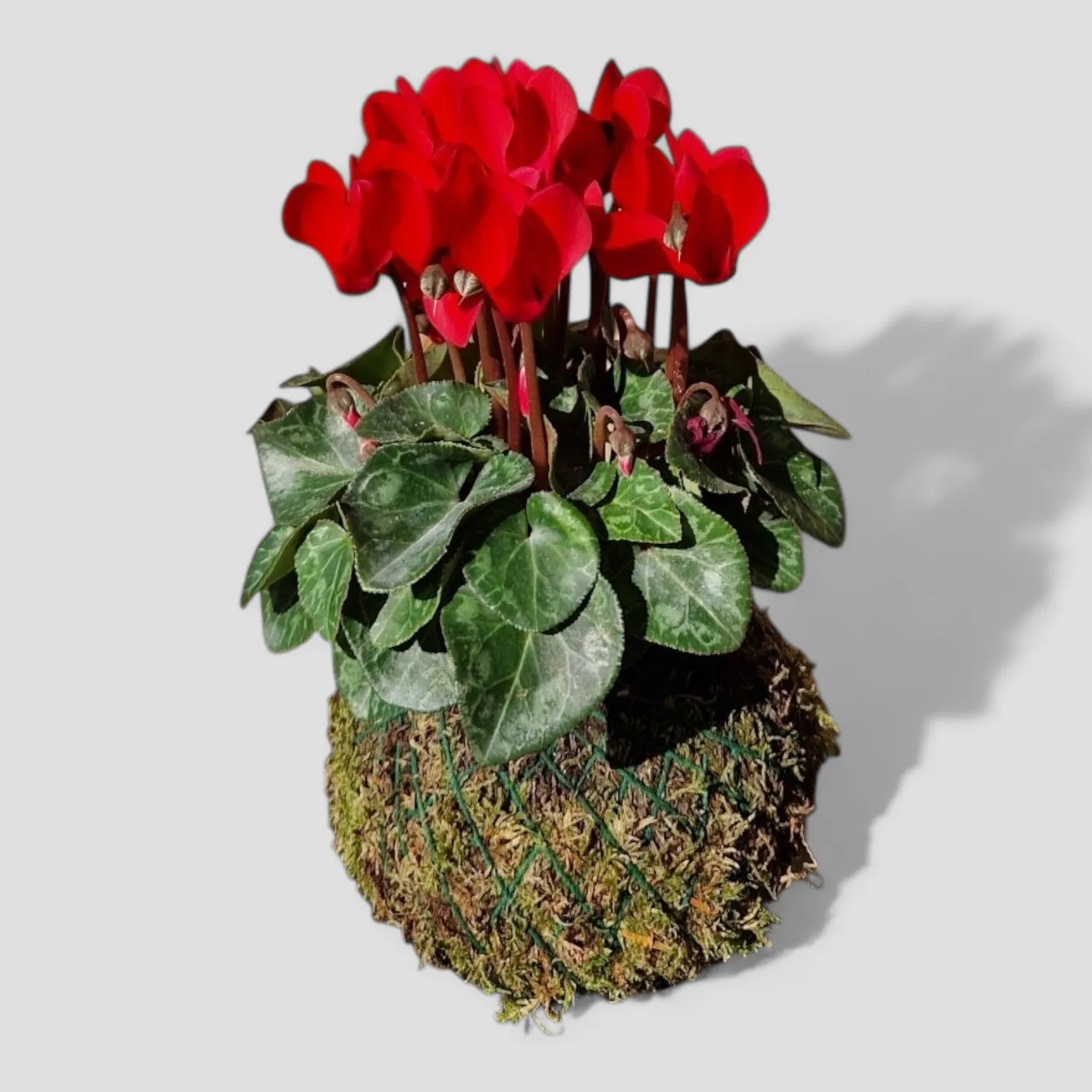 El ciclamen prefiere luz indirecta brillante. Es importante no exponerlo a la luz solar directa, ya que esto puede quemar sus hojas y flores delicadas. En kokedama, se desarrolla bien en un lugar iluminado, como cerca de una ventana orientada al este o al norte, pero protegido del sol fuerte.