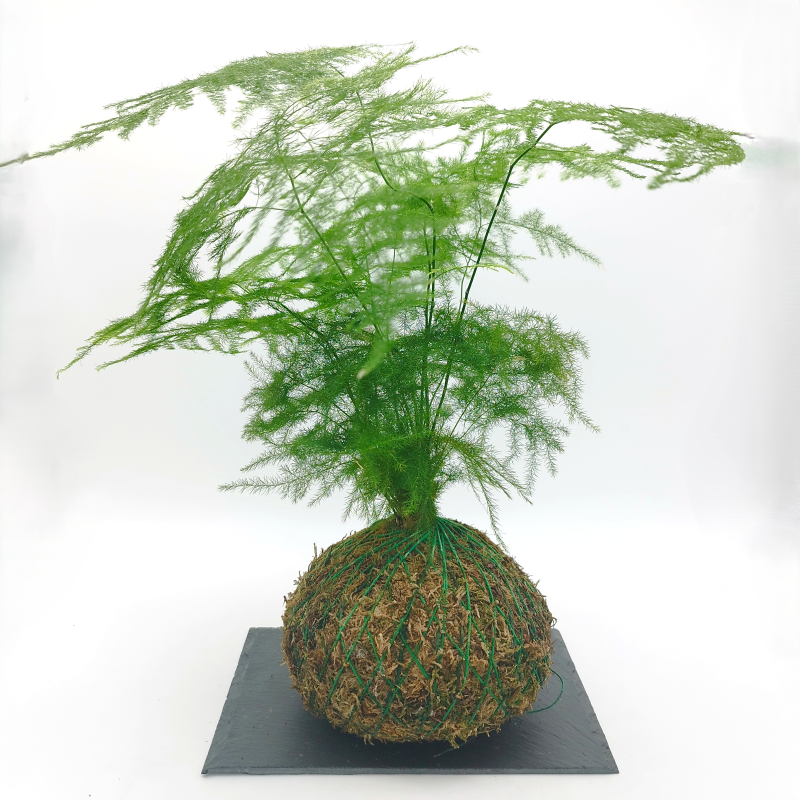 La Esparraguera (Asparagus setaceus) en kokedama se desarrolla mejor en luz indirecta brillante. Aunque puede tolerar algo de sombra parcial, su crecimiento será más frondoso y saludable si recibe una buena cantidad de luz filtrada. Evita la exposición directa al sol, ya que puede quemar sus delicadas hojas.